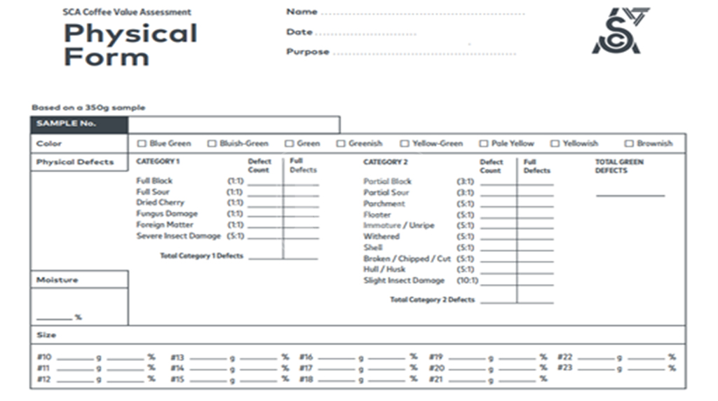 فرم ارزیابی فیزیکی انجمن قهوه تخصصی