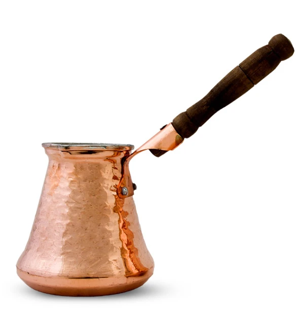 جزوه مسی شش نفره این قهوه جوش با جنس مس و در سایز 6 نفره با دهنه باریک است که با توجه به جنس مسی بدنه یکی از بهترین وسیله های دم کردن قهوه ترک است. البته برای دم کردن قهوه ترک می توان به پارامتر های دیگری نظیر قهوه مناسب ، روش دم آوری و شعله مناسب نیز اشاره کرد. این محصول ساخت ایران است.