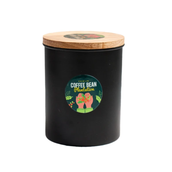 ظرف نگهدارنده قهوه 800 میل درب چوبی بدنه مشکی طرح دار رنگ سبز